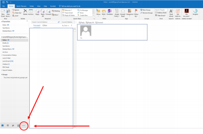 Step 1: Open Microsoft Outlook and click the ellipses at the bottom left of your window. (Notated in the example below by the red circle and arrow)
