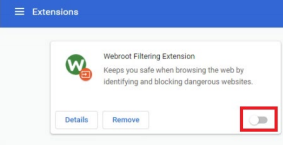 4. Toggle the switch under “Webroot Filtering Extension” to be blue