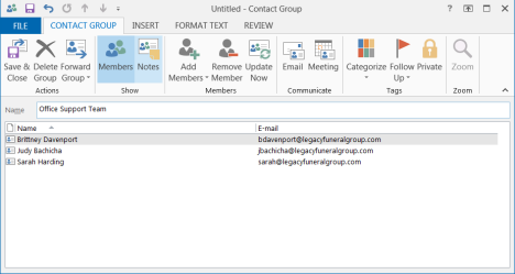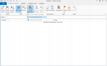 Note: To find this group. Create a new e-mail and click Address Book. Scroll the drop down menu and click Contacts under your e-mail address.