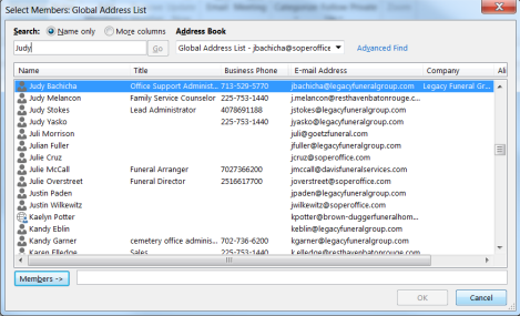 Step 6: Type in the contact that you are looking for. Double Click the name you would like to add and it will appear in the Members bar at the bottom of the screen.