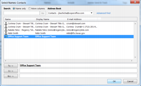 Once there, select your group. Click To followed by OK. This will create an e-mail to your new group.