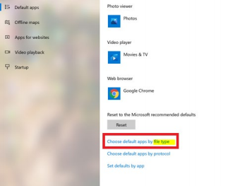 5. Scroll down the page and click the blue text that reads “Choose default apps by file type”