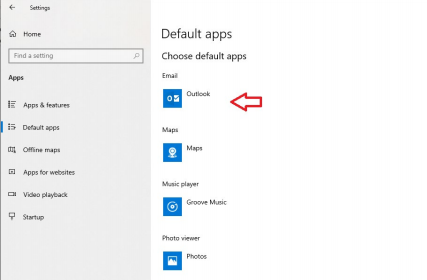 4. You will now see Outlook selected as your Email app